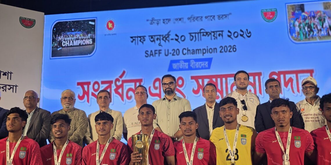 সাফজয়ী ফুটবলারদের সংবর্ধনা দিলেন যুব ও ক্রীড়া প্রতিমন্ত্রী