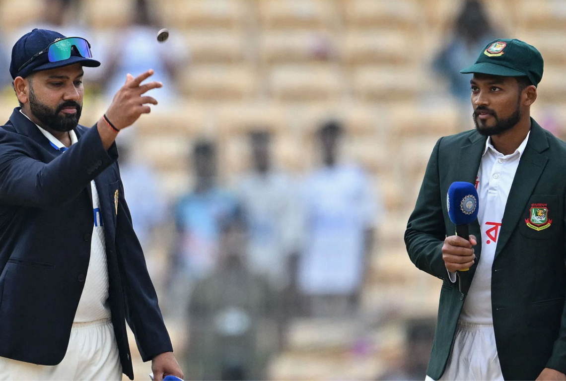 ভারতের বিপক্ষে সিরিজের দ্বিতীয় ও শেষ টেস্টে আজ থেকে মাঠে নামছে বাংলাদেশ। আউট ফিল্ড ভেজা থাকায় এক ঘণ্টা বিলম্বে টস হয়েছে। টস জিতে শুরুতে ফিল্ডিংয়ের সিদ্ধান্ত নিয়েছেন ভারত অধিনায়ক রোহিত শর্মা। খেলা শুরু হবে বাংলাদেশ সময় সকাল ১১টায়।