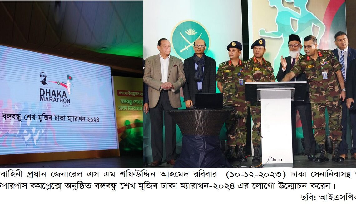 বঙ্গবন্ধু শেখ মুজিব ঢাকা ম্যারাথন-২০২৪ এর লোগো উন্মোচন করলেন বাংলাদেশ অলিম্পিক অ্যাসোসিয়েশনের সভাপতি ও সেনাবাহিনী প্রধান জেনারেল এস এম শফিউদ্দিন আহমেদ। আজ ঢাকা সেনানিবাসস্থ আর্মি মাল্টিপারপাস কমপ্লেক্সে অনাড়ম্বর এক অনুষ্ঠানে প্রধান অতিথি হিসেবে উপস্থিত থেকে সেনাপ্রধান বঙ্গবন্ধু শেখ মুজিব ঢাকা ম্যারাথন-২০২৪ এর লোগো উন্মোচন করেন।