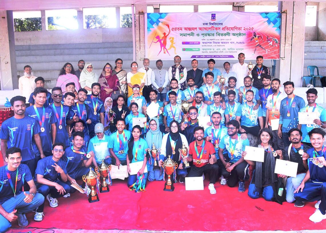 ঢাকা বিশ্ববিদ্যালয় অ্যাথলেটিকস্ কমিটির সভাপতি অধ্যাপক ড. এস. এম. আরিফ মাহমুদের সভাপতিত্বে পুরস্কার বিতরণী অনুষ্ঠানে শারীরিক শিক্ষা কেন্দ্রের ভারপ্রাপ্ত পরিচালক এস এম জাকারিয়াসহ বিভিন্ন হলের প্রাধ্যক্ষ, আবাসিক শিক্ষক, শিক্ষার্থী ও খেলোয়াড়বৃন্দ উপস্থিত ছিলেন।