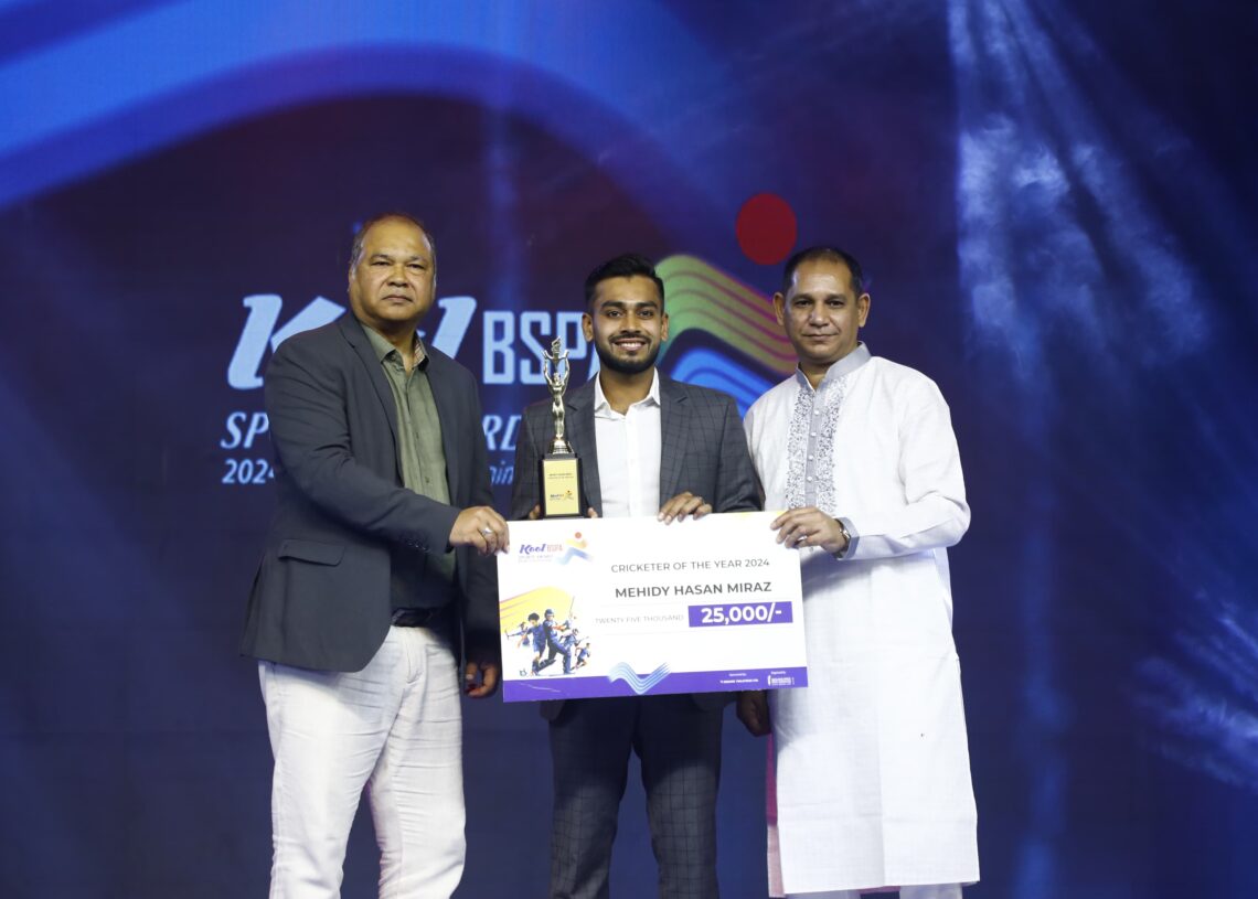 ২০২৪ সালের বর্ষসেরা ক্রীড়াবিদ (স্পোর্টস পারসন অব দ্য ইয়ার ২০২৪) হয়েছেন মেহেদী হাসান মিরাজ। জাতীয় নারী ফুটবল দলের মিডফিল্ডার ঋতু পর্ণা চাকমা দর্শকের ভোটে জিতেছেন পপুলার চয়েজ অ্যাওয়ার্ড। শুক্রবার জমকালো অনুষ্ঠানের মাধ্যমে কুল-বিএসপিএ স্পোর্টস অ্যাওয়ার্ড ২০২৪ তুলে দেয়া হয় বিভিন্ন ডিসিপ্লিনের সেরাদের হাতে।