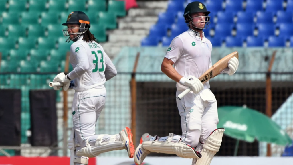 দক্ষিণ আফ্রিকার দ্বিতীয় উইকেট জুটিতে টনি ডি জর্জি ও ট্রিস্টান স্টাবস দলকে সামনের দিকে নিয়ে যান। তাদের ১৩৬ রানের জুটিতে দুজনই ফিফটি পূর্ণ করেন এবং পরে ডি জর্জি প্রথম টেস্ট সেঞ্চুরির স্বাদ পান। চা বিরতির আগেই ১৪৬ বলে ৮ চার ও ২ ছক্কায় শতরানে পৌঁছান তিনি।
