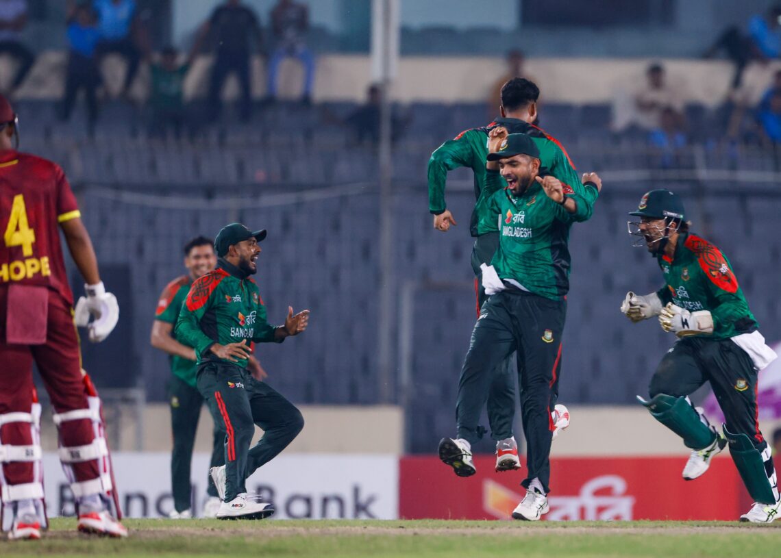 ২০৮ রানের জবাবে ব্যাটিংয়ে নেমে ওপেনিং জুটিতে ১২ ওভারে ৫১ রান তোলে ক্যারিবিয়ান ওপেনার ব্রেন্ডন কিং ও আলিথ আথানাজে! তবে মন্থর উইকেটে প্রথম ব্রেক থ্রো এনে দেন রিশাদ হোসেন। টানা ৭ ওভার বোলিং করে ২৫ রান দিয়ে একাই পাঁচ উইকেট তুলে নেন এই লেগ স্পিনার।