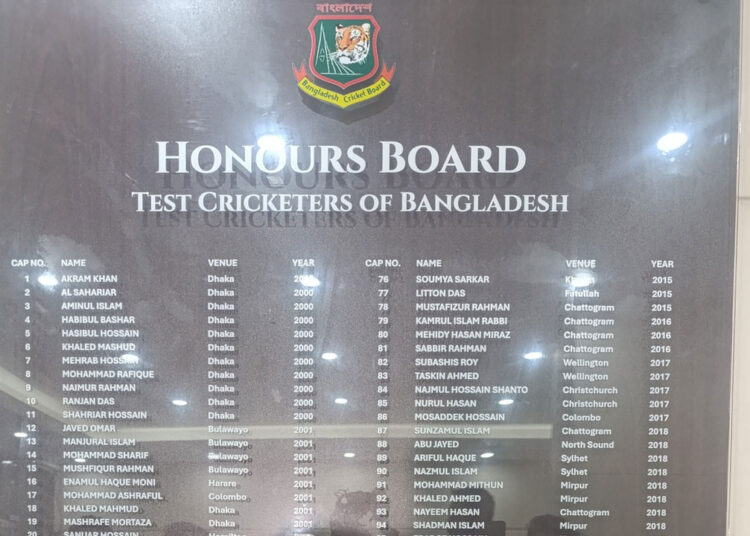 বাংলাদেশ টেস্ট ক্রিকেটে পা রেখেছিল ২০০০ সালের ১০ নভেম্বর। তার আগে সেই বছরের ২৬ জুন আইসিসির কাছ থেকে টেস্ট মর্যাদা পেয়েছিল লাল-সবুজের প্রতিনিধিরা। দীর্ঘ পথচলার ২৫ বছর পূর্তিতে দেশের ক্রিকেটে যোগ হলো এক নতুন ইতিহাস—মিরপুর শের-ই বাংলা স্টেডিয়ামে উদ্বোধন হলো ‘টেস্ট অনার্স বোর্ড’।