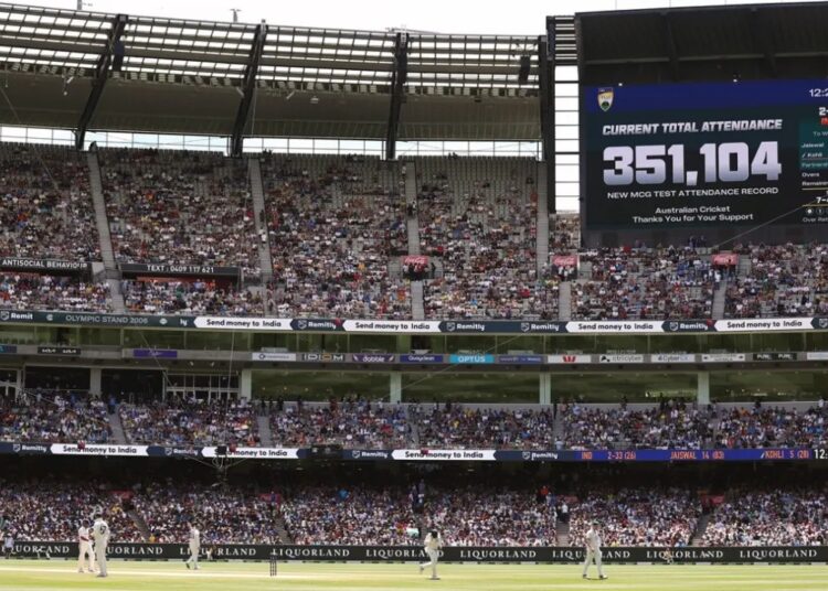 অস্ট্রেলিয়া-ভারত মেলবোর্ন টেস্টে দর্শক উপস্থিতি রেকর্ড গড়েছে। এ পর্যন্ত ৩,৫০,৭০০ জন দর্শক মাঠে উপস্থিত থেকে ম্যাচটি উপভোগ করেছেন। যা সব থেকে বেশি। এর আগে ১৯৩৭ সালে একটি ম্যাচ ৩,৫০,৫৩৪ জন উপভোগ করেছিলেন।
