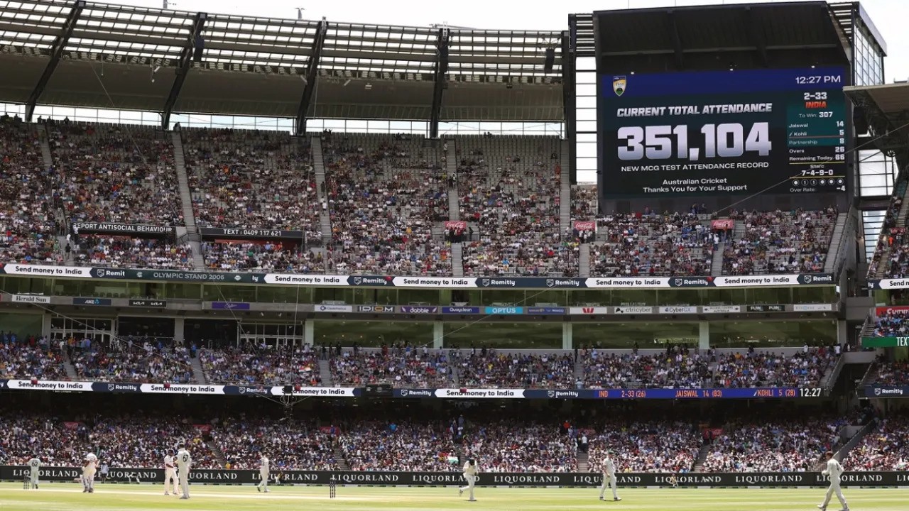 অস্ট্রেলিয়া-ভারত মেলবোর্ন টেস্টে দর্শক উপস্থিতি রেকর্ড গড়েছে। এ পর্যন্ত ৩,৫০,৭০০ জন দর্শক মাঠে উপস্থিত থেকে ম্যাচটি উপভোগ করেছেন। যা সব থেকে বেশি। এর আগে ১৯৩৭ সালে একটি ম্যাচ ৩,৫০,৫৩৪ জন উপভোগ করেছিলেন।