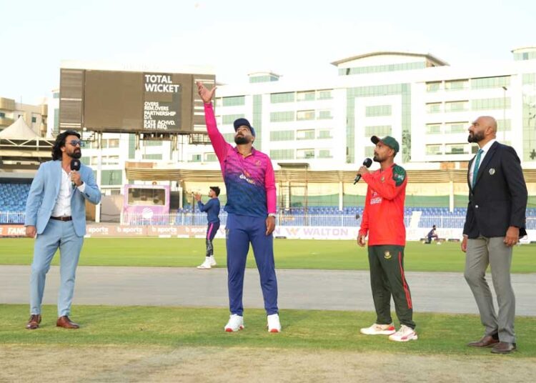 সংযুক্ত আরব আমিরাতের বিপক্ষে সিরিজের দ্বিতীয় টি-টোয়েন্টিতে মুখোমুখি হয়েছে বাংলাদেশ। সিরিজ নিশ্চিত করতে তিন পরিবর্তন নিয়ে টস হেরে ব্যাটিংয়ে বাংলাদেশ। শারজাহ ক্রিকেট স্টেডিয়ামে ম্যাচটি শুরু বাংলাদেশ সময় রাত ৯টায়।