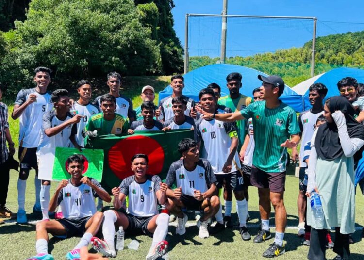 জাপানের ফুকুওয়ায় আমন্ত্রণমূলক অ-১৭ ফুটবল ফেস্টিভ্যালে দারুণ সূচনা করেছে বিকেএসপি অ-১৭ দল। স্থানীয় সময় বৃহস্পতিবার সকালে গ্লোবাল অ্যারেনা মাঠে টকাই বিশ্ববিদ্যালয় হাই স্কুলকে ১-০ গোলে হারায় বাংলাদেশের এই দল। ম্যাচের ৭০ মিনিটে একমাত্র জয়সূচক গোলটি করেন রিফাত কাজী।