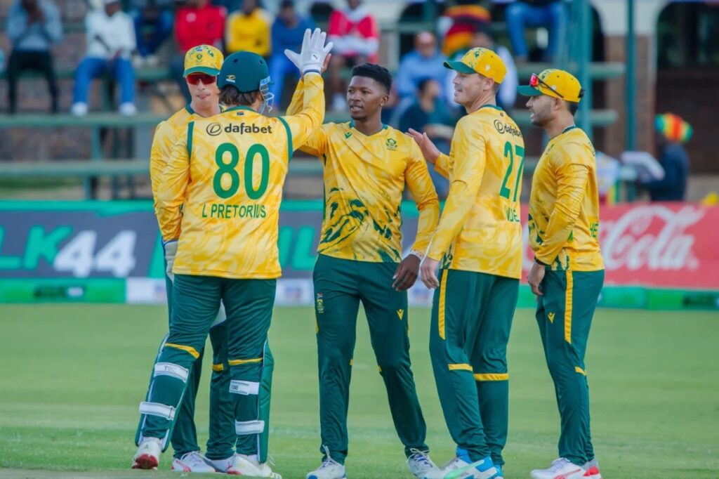 জিম্বাবুয়ের বিপক্ষে টি-টোয়েন্টি সিরিজে শুভ সূচনা করেছে দক্ষিণ আফ্রিকা। গতকাল হারারেতে অনুষ্ঠিত প্রথম ম্যাচে ৫ উইকেটে জয় পেয়েছে প্রোটিয়ারা। নির্ধারিত ২০ ওভারে ৬ উইকেট হারিয়ে জিম্বাবুয়ে ১৪১ রান করেছিল। জবাবে দক্ষিণ আফ্রিকা ১৫.৫ ওভারে ৫ উইকেট হারিয়ে জয় তুলে নেয়।