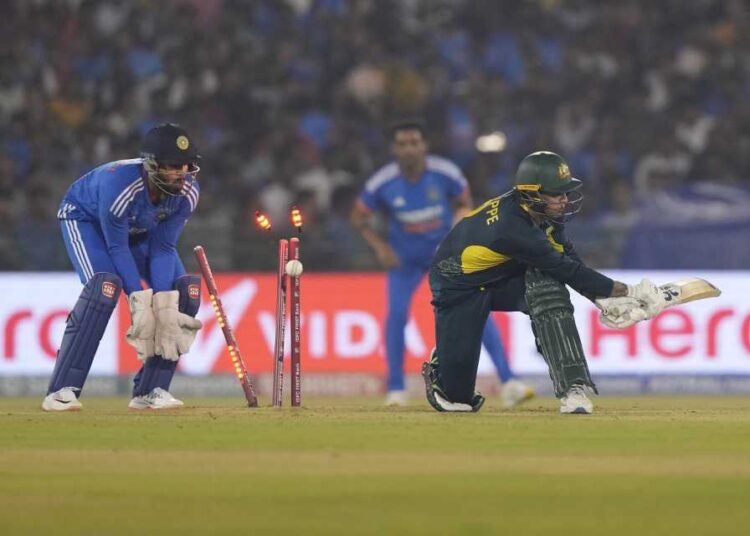 জয়পুরে চতুর্থ ম্যাচে অস্ট্রেলিয়াকে ২০ রানে হারিয়ে টি-টোয়েন্টি সিরিজ জয় নিশ্চিত করলো স্বাগতিক ভারত। ছত্তিশগড়ের রায়পুরে টস হেরে ব্যাটিংয়ে নেমে ৯ উইকেটে ১৭৪ রান তোলে ভারত। জবাবে ৭ উইকেটে ১৫৪ রান নিয়ে সন্তুষ্ট থাকতে হয়েছে অস্ট্রেলিয়াকে।