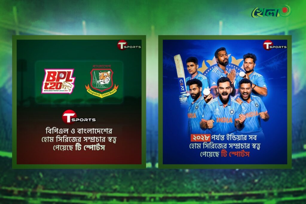 এদিকে, ২০২৮ সাল পর্যন্ত ভারতীয় ক্রিকেট দলের সব হোম সিরিজের সত্ত্ব কিনেছে টি স্পোর্টস। ভিরাট কোহলি-রোহিত শর্মাদের সব হোম ম্যাচ দেখা যাবে টি স্পোর্টস টিভি ও টি স্পোর্টস অ্যাপে। এ সময় অস্ট্রেলিয়া, ইংল্যান্ড, নিউজিল্যান্ড, ওয়েস্ট ইন্ডিজ, সাউথ আফ্রিকা, শ্রীলঙ্কা-সহ প্রায় সব দেশের সঙ্গেই দ্বি-পাক্ষিক সিরিজ খেলবে টিম ইন্ডিয়া। আগামী বছরের সেপ্টেম্বরে দুই টেস্ট ও তিন ম্যাচের টি টোয়েন্টি সিরিজ খেলতে ইন্ডিয়া যাবে বাংলাদেশ দল। এই ম্যাচগুলো সরাসরি সম্প্রচার করবে টি স্পোর্টস নেটওয়ার্ক।