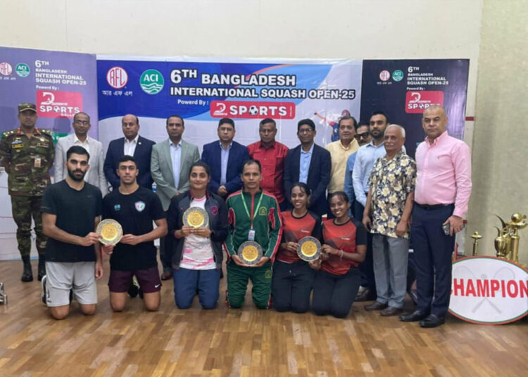 গতকাল (মঙ্গলবার) ঢাকা সেনানিবাসের আর্মি স্কোয়াশ কমপ্লেক্সে পর্দা নামে চারদিনব্যাপী ৬ষ্ঠ বাংলাদেশ আন্তর্জাতিক স্কোয়াশ ওপেন ২০২৫-এর। টুর্নামেন্টে বাংলাদেশ, ভারত, শ্রীলংকা, মালয়েশিয়া, কুয়েত ও ইরানসহ ছয় দেশের স্কোয়াশ খেলোয়াড়রা অংশ নেন।