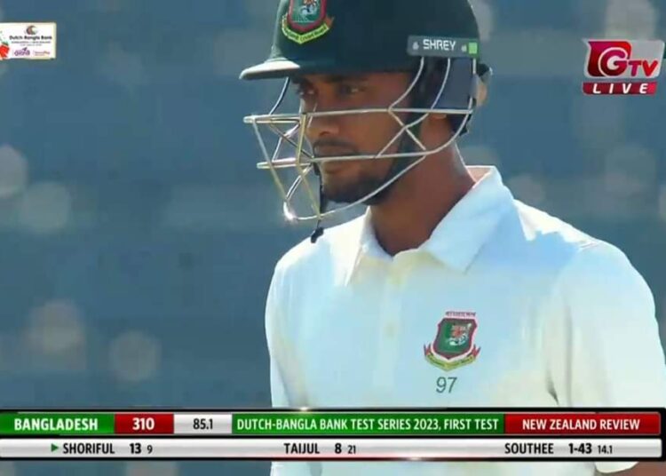 আগেরদিনের দুই অপরাজিত ব্যাটার শরিফুল ইসলাম ও তাইজুল ইসলাম। তাইজুল ৮ ও শরিফুল ১৩ রানে দ্বিতীয় দিনের খেলা শুরু করেন। কিন্তু টিম সাউদির করা প্রথম বলটাই ঠিকমতো খেলতে পারেননি শরিফুল। লেগ বিফোর উইকেট হয়ে ফিরেছেন এই পেসার। সাউদি যেখানে প্রথম দিন ১৪ ওভার বল করে উইকেটশূন্য ছিলেন সেখানে নিজের ১৫ততম ওভারের প্রথম বলেই সাফল্য তুলে নেন সাউদি।