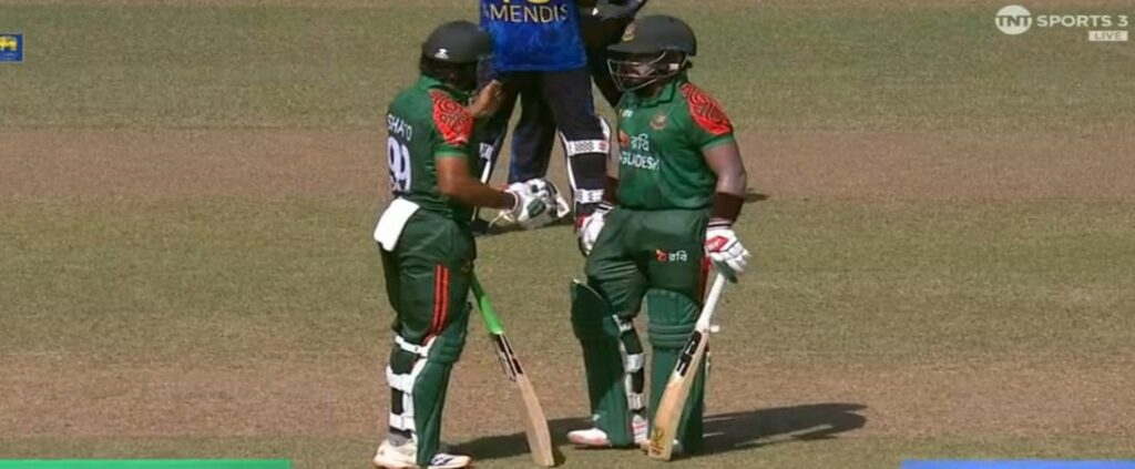 ব্যাটিংয়ে নেমে অবশ্য শুরুটা মোটেও আশাব্যঞ্জক ছিল না। দলীয় মাত্র ১০ রানের মাথায় প্রথম ধাক্কা খায় বাংলাদেশ। ইনফর্ম পেসার আশিথা ফার্নান্দোর বলে কট বিহাইন্ড হয়ে ১১ বলে ৭ রান করে ফেরেন তানজিদ হাসান তামিম। একেবারে শুরুতেই ওপেনারের বিদায়ে চাপে পড়ে টাইগাররা।