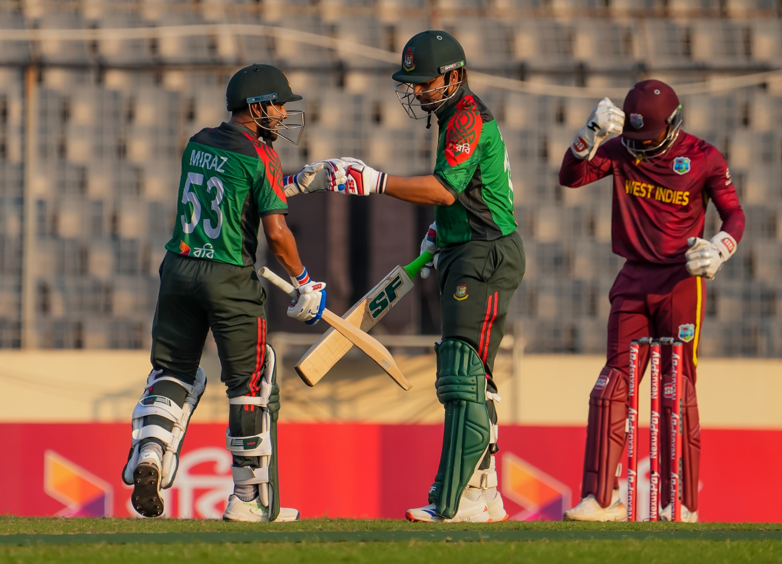 দলে ফেরা স্পিনার নাসুম আহমেদ বিদায় ১৪ রানে। পরে নুরুল হাসানকে সঙ্গে নিয়ে দলের হাল ধরেন অধিনায়ক মেহেদী হাসান মিরাজ। ওয়ানডে ফর্মেটের স্ট্রাইক রেটে ধরে রেখে ২৪ বলে ২৩ রান করে বিদায় নেন এই উইকেট কিপার ব্যাটার। বাংলাদেশের দলীয় রান তখন ৪৬ ওভারে ৭ উইকেটে ১৬৩।