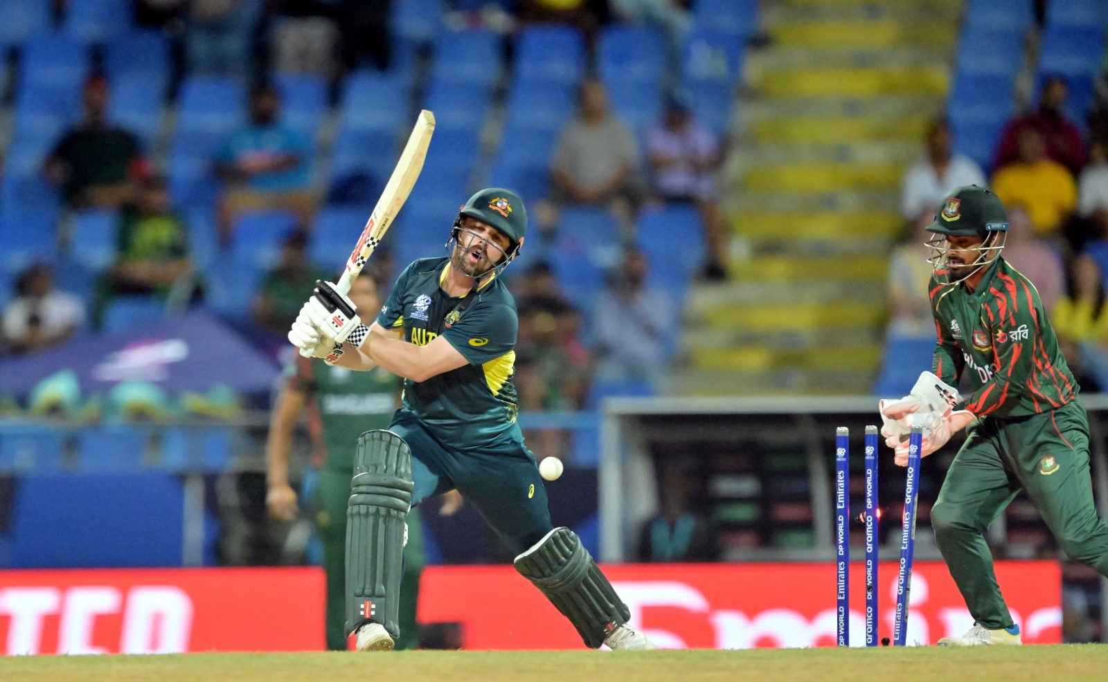 ১৪১ রানের টার্গেটে খেলতে নামা অস্ট্রেলিয়ার দুই ওপেনার ডেভিড ওয়ার্নার ও ট্রাভিস হেড ছিলেন শুরু থেকেই মারমুখি। ৪০ বলেই তুলে নেন ৬৫ রান। অর্থাৎ ৬ ওভার চার বলে ৬৫ রান তোলার পর রিশাদ হোসেনের বলে বোল্ড হয়ে ফেরেন ডেঞ্জারম্যান ট্রাভিস হেড। নিজের পরের ওভারেই অজি অধিনায়ক মিচেল মার্শকে এলবিডাব্লিউয়ের ফাঁদে ফেলেন রিশাদ।