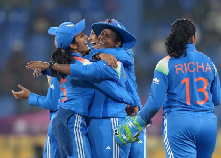 টস জয়ের পর পাকিস্তান অধিনায়ক প্রতিপক্ষকে আগে ব্যাটিংয়ের আমন্ত্রণ জানিয়েছিলেন। কিন্তু তার বোলাররা তাকে স্বস্তি এনে দিতে পারেনি। পাকিস্তান বোলারদের সামনে ভারতীয় ব্যাটাররা এতটাই স্বস্তি নিয়ে খেলেছেন যে, প্রথম আট ব্যাটারের সবাই রান পেয়েছেন। এই আট ব্যাটারের মধ্যে সবচেয়ে কম রান ছিল অধিনায়ক হারমানপ্রিত কাউরের। ১৯ রান করেছেন তিনি। সর্বোচ্চ রান ৪৬ এসেছে হারলিন দোয়েলের ব্যাট থেকে। তবে ঝড়ো ব্যাটিং করেছেন রিচা ঘোষ। ২০ বলে করেন ৩৫। তার ব্যাটিংয়ে ভারতের রান বাড়ে দ্রুত গতিতে।