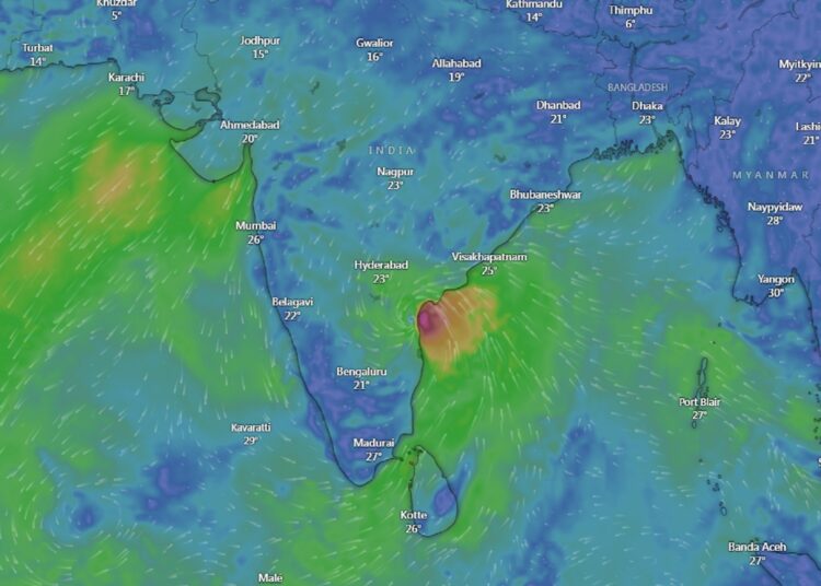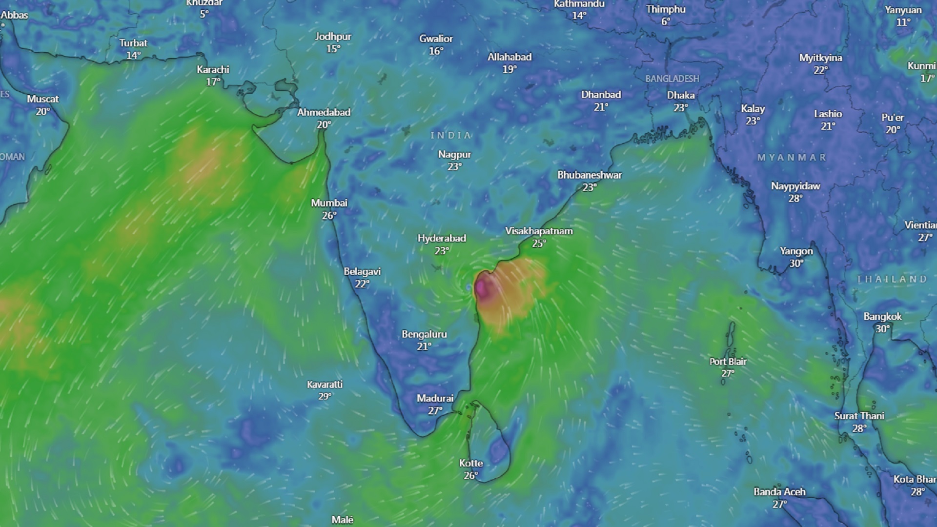 বাংলাদেশ আবহাওয়া অধিদপ্তরের ঝড় সতর্কীকরণ কেন্দ্রের সংবাদ বিজ্ঞপ্তিতে জানানো হয়েছে, ঘূর্ণিঝড় মিগজাউম ভারতের অন্ধ্রপ্রদেশের উত্তর ও উড়িষ্যা রাজ্যের দক্ষিণে অবস্থান করছে।