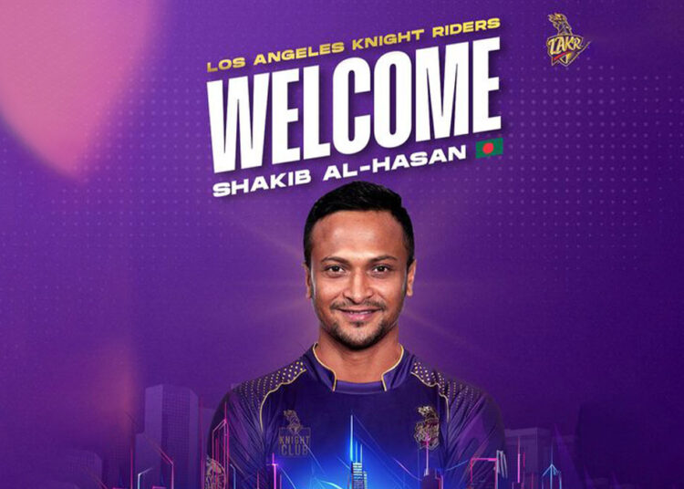 দ্বিতীয় বারের মতো হতে যাওয়া যুক্তরাষ্ট্রের ফ্র্যাঞ্চাইজি টি-টোয়েন্টি ক্রিকেট টুর্নামেন্ট মেজর লিগ ক্রিকেটের (এমএলসি) খেলবেন সাকিব আল হাসান। বিশ্বসেরা এই অলরাউন্ডারের সঙ্গে চুক্তি করেছে শাহরুখ খানের দল লস অ্যাঞ্জেলেস নাইট রাইডার্স।