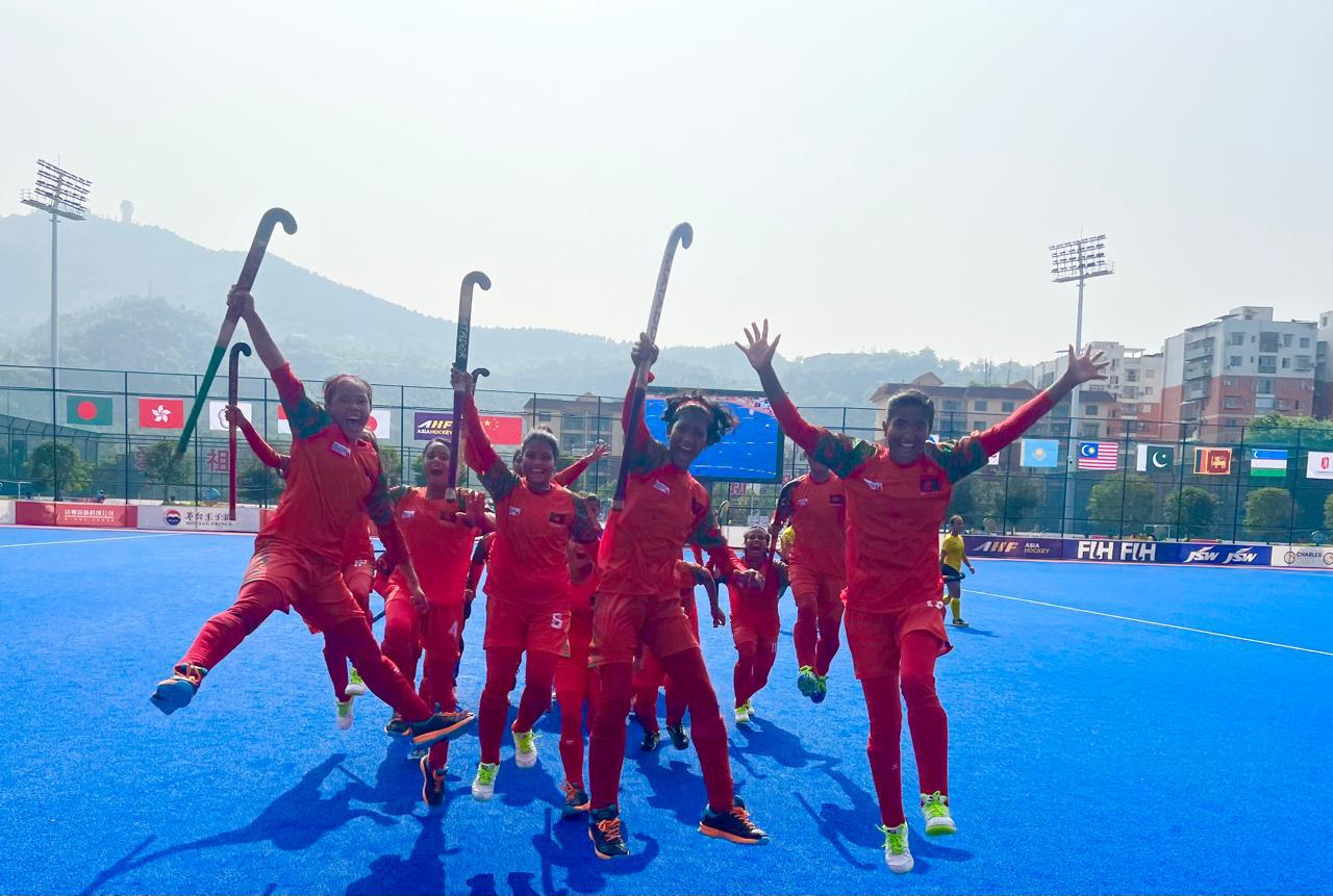 অনূর্ধ্ব-১৮ এশিয়া কাপে এবারই প্রথম অংশ নেয় বাংলাদেশ নারী হকি দল। প্রথম আসরেই ব্রোঞ্জ জিতে নিয়েছে তারা। গত শুক্রবার কাজাখ মেয়েদের বিপক্ষেই ২-২ গোলে ড্র হয়েছিল বাংলাদেশের মেয়েদের ম্যাচটি। আজ তাদের জালেই গুণে গুণে ছয়বার বল পাঠিয়েছেন মেয়েরা।