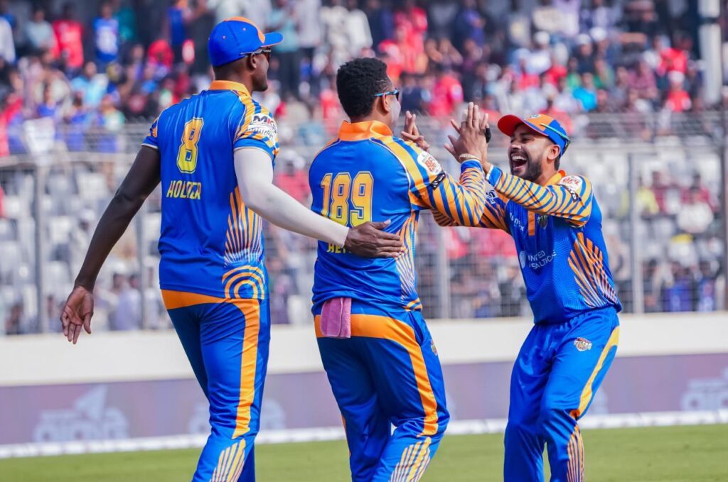একে একে বিদায় নেন সৌম্য সরকার শুন্য, জেমস ভিন্স ১,মেহেদী হাসান ১, সাইফ হাসান ৪ ও সাইফউদ্দিন ৪ রান করে বিদায় নেন। দলের বিপদে অধিনায়ক নুরুল হাসান সোহান হাল ধরার চেষ্টা করেন। কিন্তু এর মাঝেই উইকেটে ফিরে যান টিম ডেভিড ৭, আন্দ্রে রাসেল ৪ ও রকিবুল হাসান শুন্য রানে। এরপর দলীয় ইনিংসের ১৩তম ওভারে দলীয় ৫২ রানের মাথায় ব্যক্তিগত ২৩ রান করে বিদায় নেন অধিনায়ক নুরুল হাসান সোহান।
