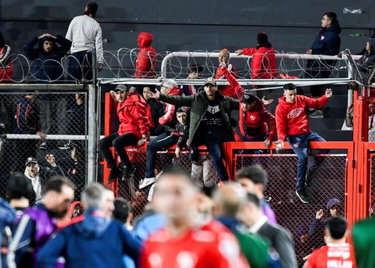আর্জেন্টিনার বুয়েন্স আয়ার্সে কোপা সুদামেরিকানার শেষ ষোলোর ম্যাচে ঘটলো এক নজিরবিহীন ঘটনা। চিলির ইউনিভার্সিদাদ দে চিলে ও স্বাগতিক ইন্ডিপেনডিয়েন্তে–র ম্যাচ চলাকালীন হঠাৎই সমর্থকদের মধ্যে ভয়াবহ সংঘর্ষ ছড়িয়ে পড়ে। রক্তক্ষয়ী সেই ঘটনায় অন্তত ১৯ জন আহত হয়ে হাসপাতালে ভর্তি হন। পরে পুলিশ পরিস্থিতি নিয়ন্ত্রণে আনলেও ম্যাচ বাতিল করতে বাধ্য হয় আয়োজকরা।