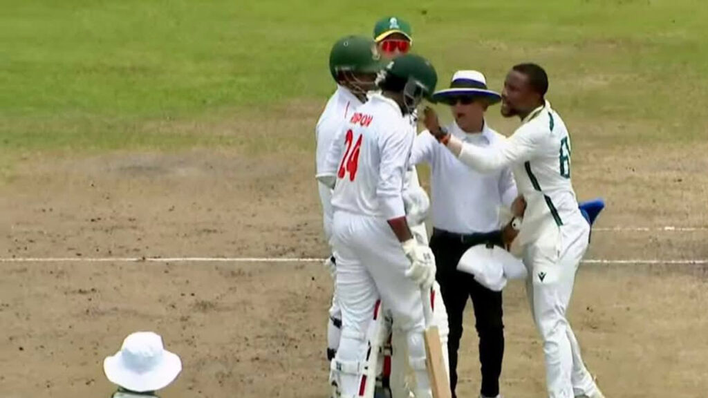 শান্তির খেলা বলে পরিচিত ক্রিকেটে আবারও দেখা গেল অনভিপ্রেত এক চিত্র। মিরপুরের শের-ই-বাংলা স্টেডিয়ামে দক্ষিণ আফ্রিকা ইমার্জিং দলের বিপক্ষে চার দিনের দ্বিতীয় ম্যাচে উত্তপ্ত বাক্যবিনিময় থেকে হাতাহাতিতে জড়ালেন দুই খেলোয়াড়—বাংলাদেশের রিপন মন্ডল এবং প্রোটিয়া পেসার টিপেসু এনটুলি।