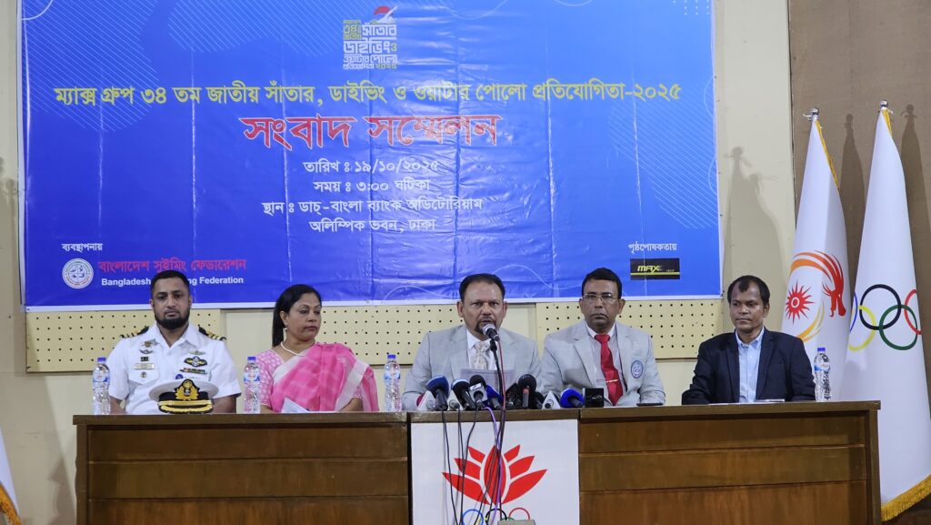 বাংলাদেশ সুইমিং ফেডারেশনের ব্যবস্থাপনায় ও ম্যাক্স গ্রুপের পৃষ্ঠপোষকতায় আগামী ২০ অক্টোবর জাতীয় সুইমিং কমপ্লেক্স, মিরপুর, ঢাকায় শুরু হচ্ছে চারদিনের ৩৪তম জাতীয় সাঁতার, ডাইভিং ও ওয়াটার পোলো প্রতিযোগিতা।