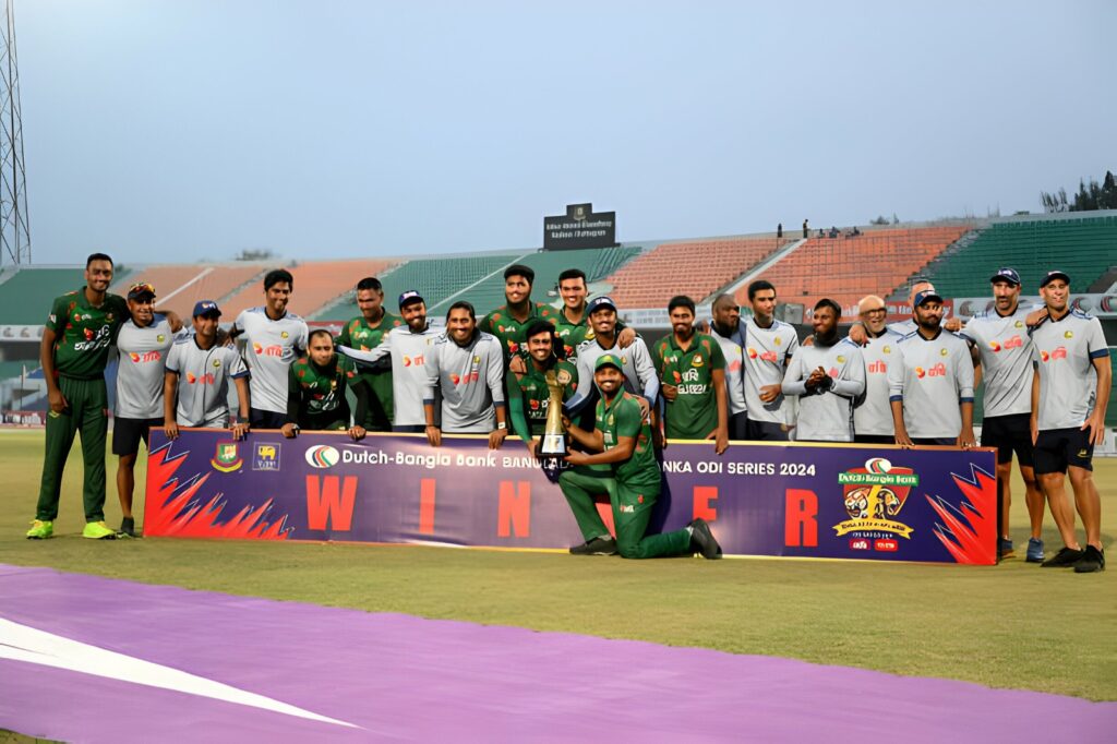 ফলে ৪০ ওভার দুই বলে ৬ উইকেটে ২৩৭ রান তুলে ৪ উইকেটে বাংলাদেশের জয়। তিন ম্যাচ সিরিজে ২-১ সিরিজ জিতল টাইগাররা। রিশাদ হোসেনর হাফ সেঞ্চুরি সুযোগ ছিলো। স্ট্রাইকে থাকা মুশফিকুর রহিমও হয়তো চেয়েছিলেন রিশাদের ব্যাটে আসুক ৫০ রানের ইনিংস। বল ডিফেন্সও করেছিলেন। কিন্তু থিকসানার বলে মুশফিক ডিফেন্স করলেও স্লিপ দিয়ে বল বাউন্ডারি সীমানা পার হয়ে যায়।