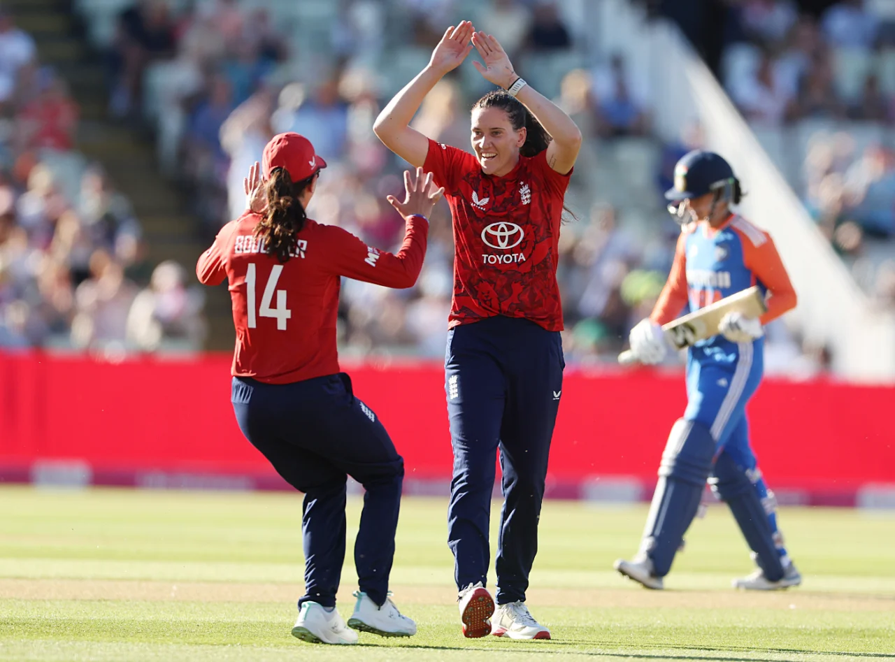 ইংল্যান্ড নারী: ১৬৮/৫ (ওয়ায়াট-হজ ৫৬, ডাঙ্কলি ৪৬, দীপ্তি ২-৩১, অরুন্ধতী ২-৪৭)