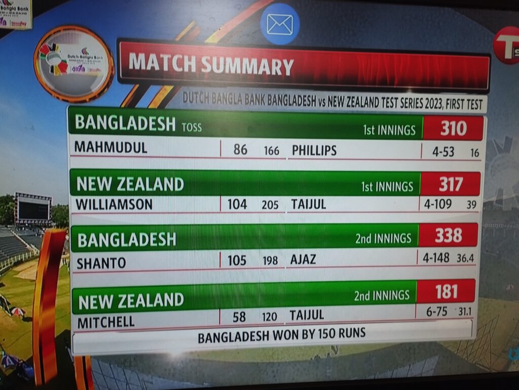 সিলেট টেস্টে নিউজিল্যান্ডকে ১৫০ রানে হারালো বাংলাদেশ