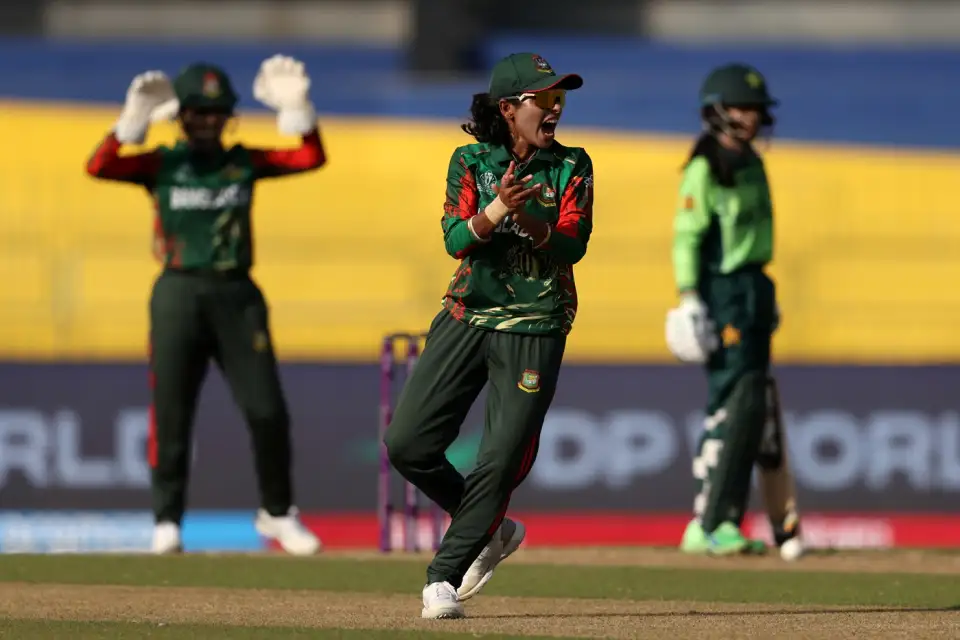 কলম্বোতে ব্যাটিংয়ে নেমে শুরু থেকেই নিয়মিত বিরতিতে উইকেট হারায় তারা। দলের পক্ষে মুনিবা আলী ১৭,রমিন শামীমা ২৩, ও অধিনায়ক ফাতেমা সানা ২২ রান করেন। এছাড়া ডায়না বেগ ১৬ রান করে অপরাজিত থাকেন। বল হাতে স্বর্ণা আক্তার ৩.৩ ওভারে ৫ রান দিয়ে একাই নেন ৩ উইকেট। এছাড়া মারুফা ৭ ওভারে ৩১ রানে দুটি ও নাহিদা আক্তার ৮ ওভারে ১৯ রান নিয়ে নেন দুটি উইকেট।
