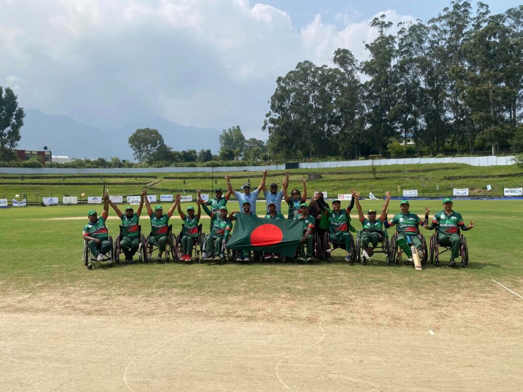 নেপালের ত্রিভূবন ইন্টারন্যাশনাল ক্রিকেট গ্রাউন্ডে স্বাগতিক নেপালের বিপক্ষে ৭ উইকেটের জয় পেয়েছে বাংলাদেশ হুইল চেয়ার ক্রিকেট টিম।