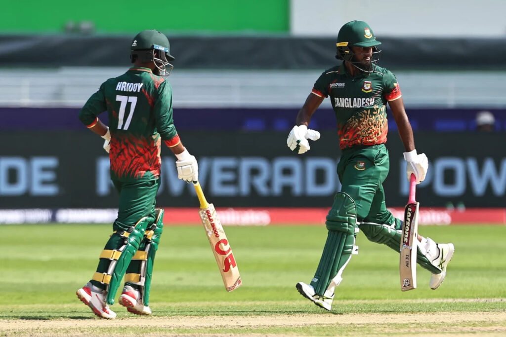 এর আগে ওপেনিংয়ে ব্যাট করতে নেমে ওভারের শেষ বলে মোহাম্মদ শামির বলে শুণ্য রানে রাহুলের হাতে ক্যাচ দেন সৌম্য। দ্বিতীয় ওভারে অধিনায়ক নাজমুল হোসেন শান্ত শুন্য রানে হার্ষিত রানার বলে কোহলির তালুবন্দি হন।
