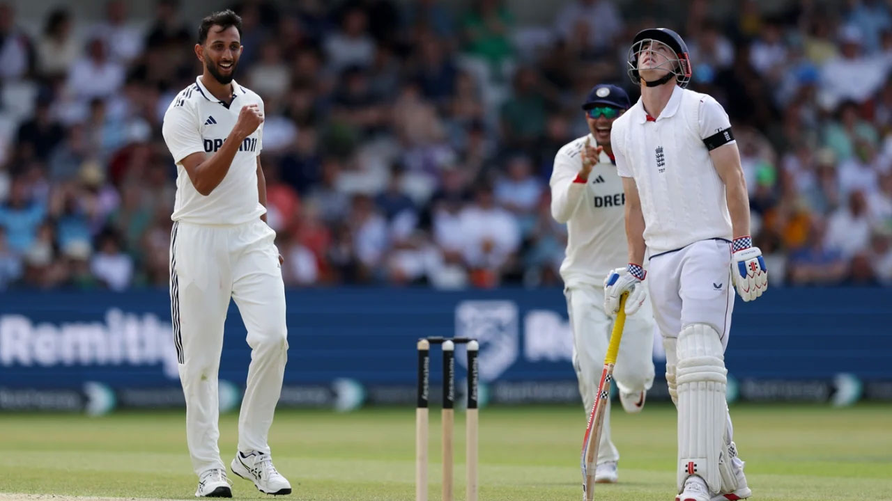 প্রসিদ্ধ কৃষ্ণার এক শটে মিসটাইম করে ফাইন লেগে ক্যাচ দিয়ে ফেরেন ব্রুক। ব্যক্তিগত ৯৯ রানে আউট হয়ে ভারতের বিপক্ষে টেস্টে দ্বিতীয় ইংলিশ ব্যাটার হিসেবে এই ‘নেলসন’ দুর্ভাগ্যে পড়লেন তিনি। তার আগে মাত্র একবার, ২০০১ সালে আহমেদাবাদ টেস্টে মার্কাস ট্রেসকোথিক এমনভাবে আউট হয়েছিলেন।
