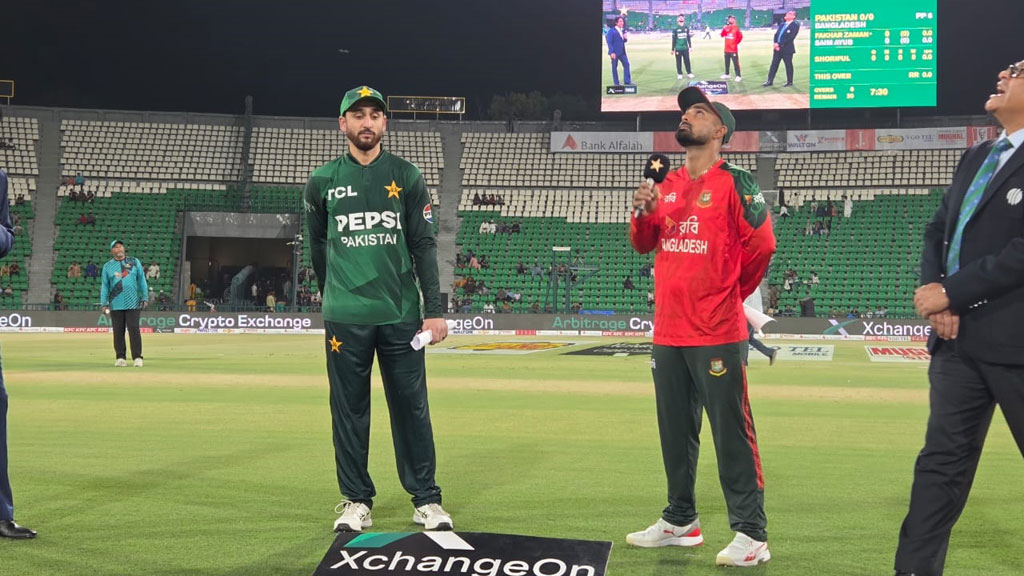 হোয়াইটওয়াশ এড়ানোর ম্যাচে টস হারল বাংলাদেশ। এ নিয়ে টানা ছয় ম্যাচ টস হারলেন ক্যাপ্টেন লিটন। ফলে টস জিতে বাংলাদেশকে আগে ব্যাটিংয়ে পাঠালেন সালমান আলি আগা।