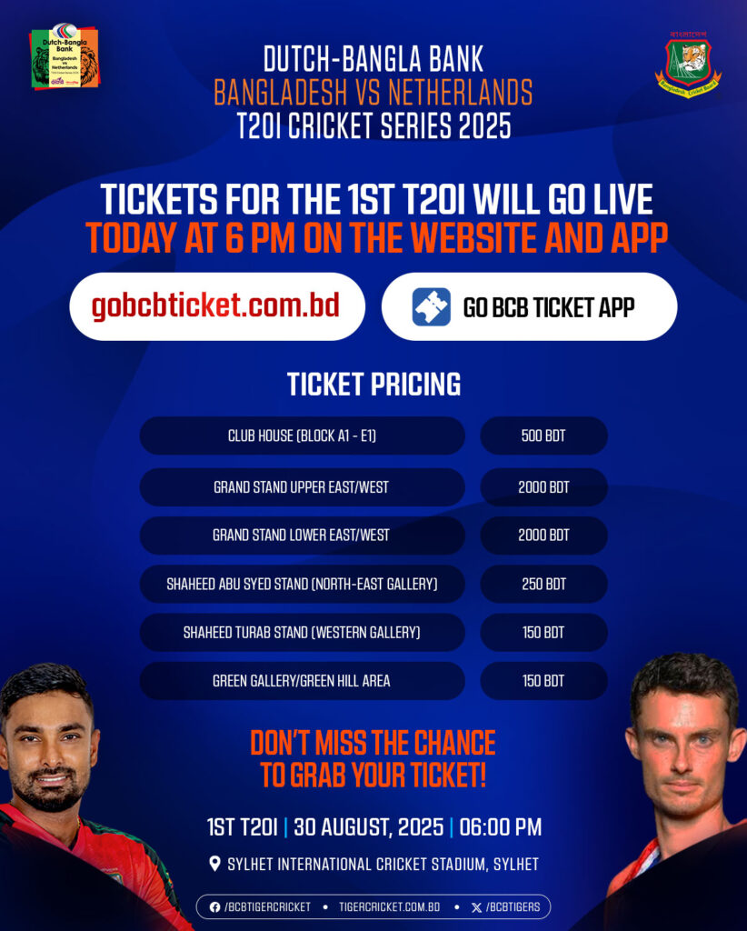 ১৫০ টাকায় দেখা যাবে বাংলাদেশ-নেদারল্যান্ডস টি-টোয়েন্টি ম্যাচ