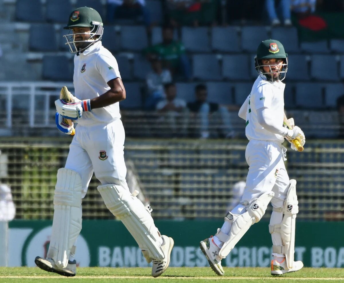 ওয়ানডে মেজাজে খেলে প্রথম সেশনে ২৭ ওভারে ১০৪ রান করেছে বাংলাদেশ। এর মাঝে তাঁরা উইকেট হারিয়েছে দুইটি। দলীয় ৩৯ রানে আইজাজ প্যাটেলের বলে আউট হন ওপেনার জাকির হোসেন। এর আগে তাঁর ব্যাট থেকে আসে ৪১ বলে ১২ রান। জাকির সতর্কতার সাথে খেললেও ওয়ান ডাউনে নামা শান্ত শুরু থেকেই ব্যাটিংয়ে দারুণ আগ্রাসী ছিলেন। গ্লেন ফিলিপসের ফুল টস ডেলিভারি উড়িয়ে মারতে গিয়ে কেন উইলিয়ামসনের হাতে ক্যাচ হয়ে সাজঘরে ফেরেন বাংলাদেশী অধিনায়ক। ফেরার আগে ৩৫ বলে ৩৭ রান করেছেন তিনি। তাঁর ব্যাট থেকে আসে ২টি চার ও ৩টি ছয়।