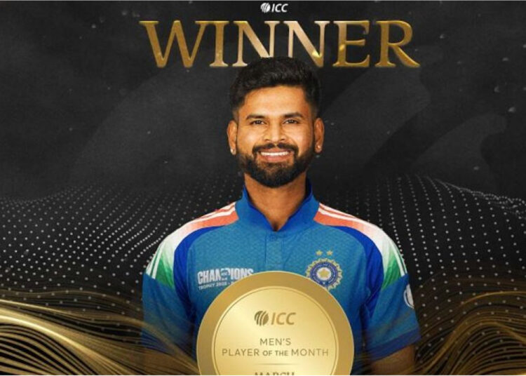 এবারের চ্যাম্পিয়ন্স ট্রফিতে সর্বোচ্চ রান সংগ্রাহক ছিলেন আইয়ার। পুরো টুর্নামেন্টে শ্রেয়াস করেছেন ২৪৩ রান। আইয়ার মাসসেরার পুরস্কার জেতার ফলে টানা দুই মাস ভারতের ক্রিকেটাররাই জিতল এটি। ফেব্রুয়ারিতে সেরা হয়েছিলেন শুবমান গিল।