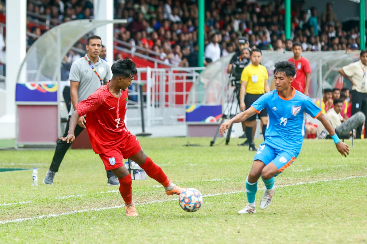 বাংলাদেশ রানার-আপ হওয়ায় সেমিতে অন্য গ্রুপের চ্যাম্পিয়ন নেপালের মুখোমুখি হবে তারা। আর ভারত খেলবে ভুটানের বিপক্ষে। ম্যাচের শুরুতে কিছুটা এলোমেলো ছিল বাংলাদেশ। সেই সুযোগে বেশ কিছু আক্রমণ করেছে ভারত। তাতে গোলও পেয়ে যায় তারা। ১৭তম মিনিটে কর্নার থেকে গোল করেন বিশাল যাদব। এই লিড বেশিক্ষণ ধরে রাখতে পারেনি ভারত।