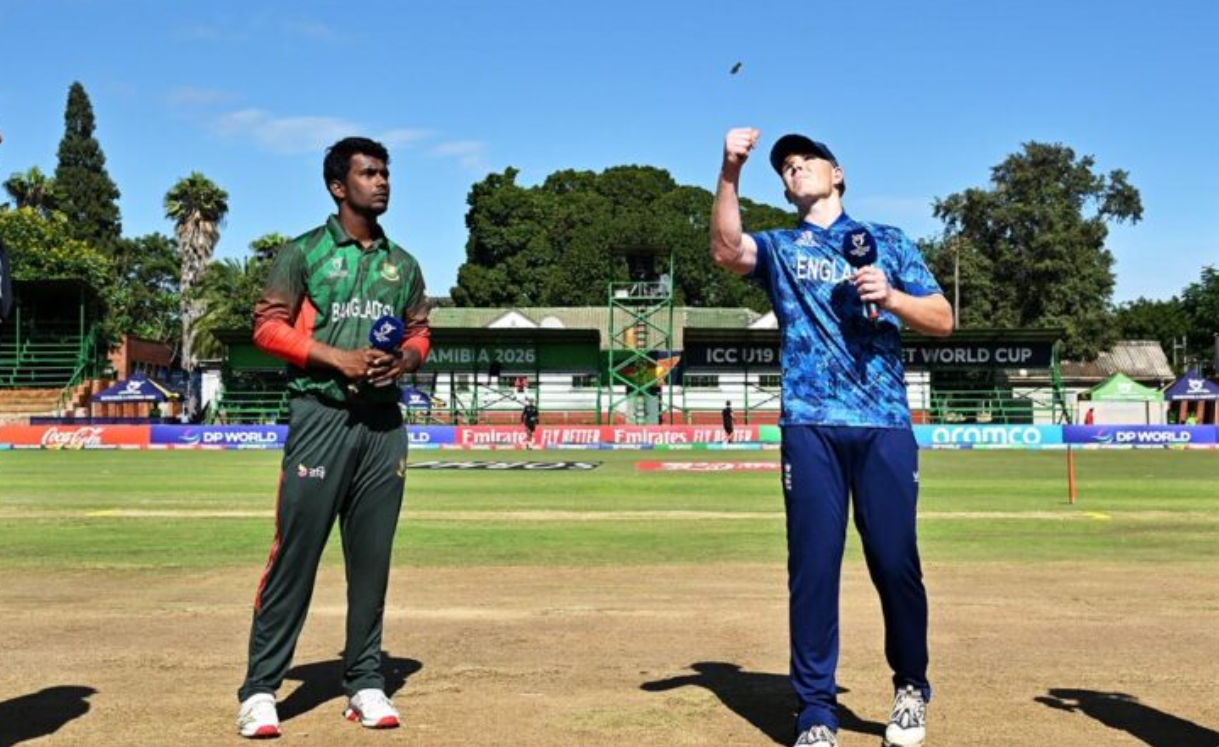 যুব বিশ্বকাপে ইংল্যান্ডের বিপক্ষে টস জিতে ব্যাটিংয়ে বাংলাদেশ , সোমবার আইসিসি অনূর্ধ্ব-১৯ ওয়ানডে বিশ্বকাপের সুপার সিক্স পর্বে নিজেদের প্রথম ম্যাচে ইংল্যান্ডের বিপক্ষে টস জিতে প্রথমে ব্যাটিংয়ের সিদ্ধান্ত নেয় বাংলাদেশ। জিম্বাবুয়ের বুলাওয়েতে ম্যাচটি শুরু বাংলাদেশ সময় দুপুর ১টা ৩০ মিনিটে শুরু হবে খেলা।