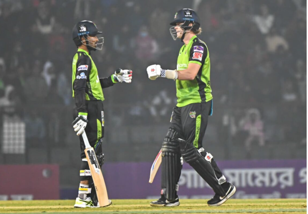 এ দিন দলের পক্ষে নাঈম ইসলাম ও আডাম রসিংটন ওপেনিংয়ে ঝড় তোলেন। দুজনেই ফফটি করার পর ভাঙে এই জুটি। দলীয় ১১৫ রানের মাথায় নাঈম ইসলাম ৩৭ বলে চার বাউন্ডারি ও তিন ছক্কায় ৫২ রান করে বিদায় নেন। এরপর আডাম রসিংটনের সঙ্গে জুটি গড়েন সাদমান ইসলাম। শেষ পর্যন্ত আডাম রসিংটন ৫৩ বলে আট বাউন্ডারি ও দুই ছক্কায় ৭৩ ও সাদমান ৩ রান করে অপরাজিত থাকেন।