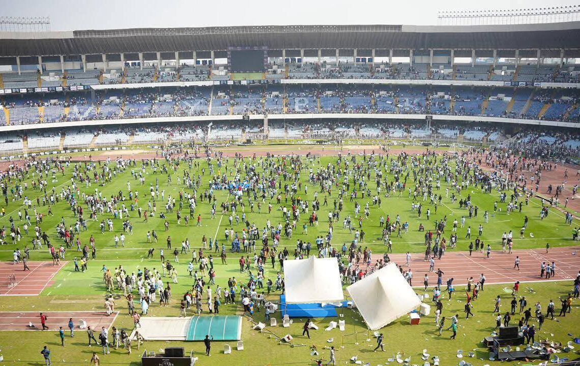 কিংবদন্তি আর্জেন্টিনার মহাতারকা লিওনেল মেসির ভারত এখন ভারতে। তবে প্রিয় মেসিকে দেখতে না পেয়ে ভারতের সমর্থকরা ভয়াবহ তান্ডব চালিয়েছেন। দশটির যুবভারতী স্টেডিয়ামে পৌঁছাতেই অনেক মানুষ ঘিরে ধরে মেসিকে। যে কারণে গ্যালারিতে থাকা দর্শকরা মেসিকে দেখতে পারছিলেন না। যে কারণে ক্ষেপে গেলেন দর্শকরা, মোটা অঙ্কে টিকিট কেটে মেসিকে দেখতে না পারায় ক্ষোভে ফেটে পড়েন তারা।