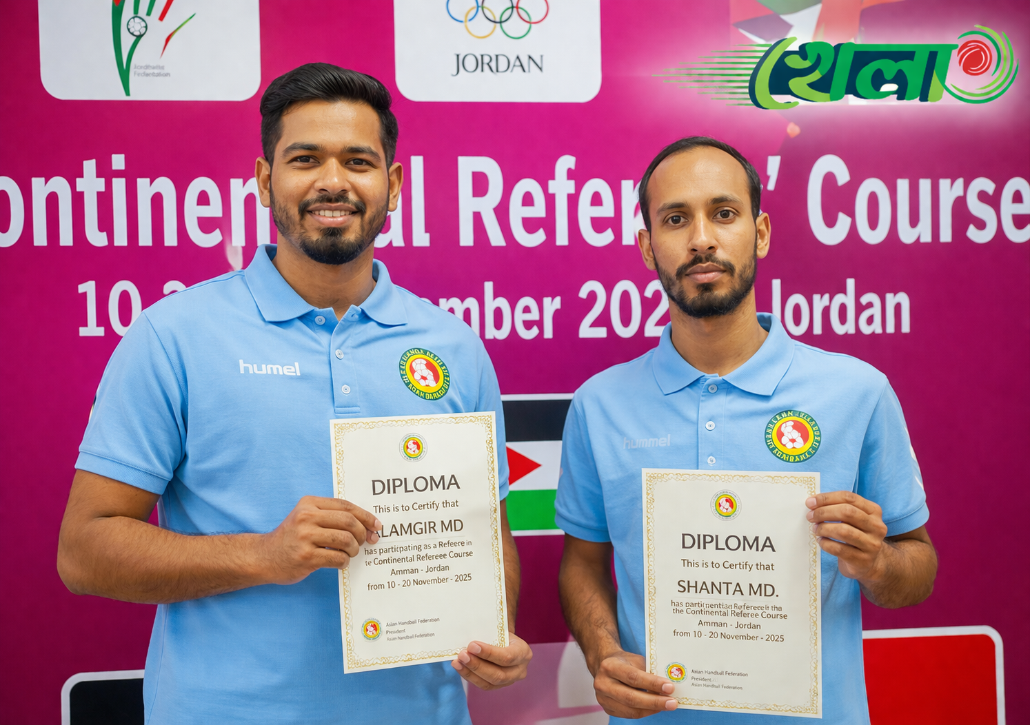 বাংলাদেশের হ্যান্ডবলের জন্য এ এক গর্বের মুহূর্ত। প্রথমবারের মতো আন্তর্জাতিক অঙ্গনে দেশের দুই হ্যান্ডবল রেফারি ম্যাচ পরিচালনার দায়িত্ব পেয়েছেন শান্ত মিয়া এবং মোহাম্মদ আলমগীর। এই মনোনয়ন এসেছে বিশ্ব হ্যান্ডবলের সর্বোচ্চ নিয়ন্ত্রক সংস্থা ইন্টারন্যাশনাল হ্যান্ডবল ফেডারেশন (আইএইচএফ) থেকে।