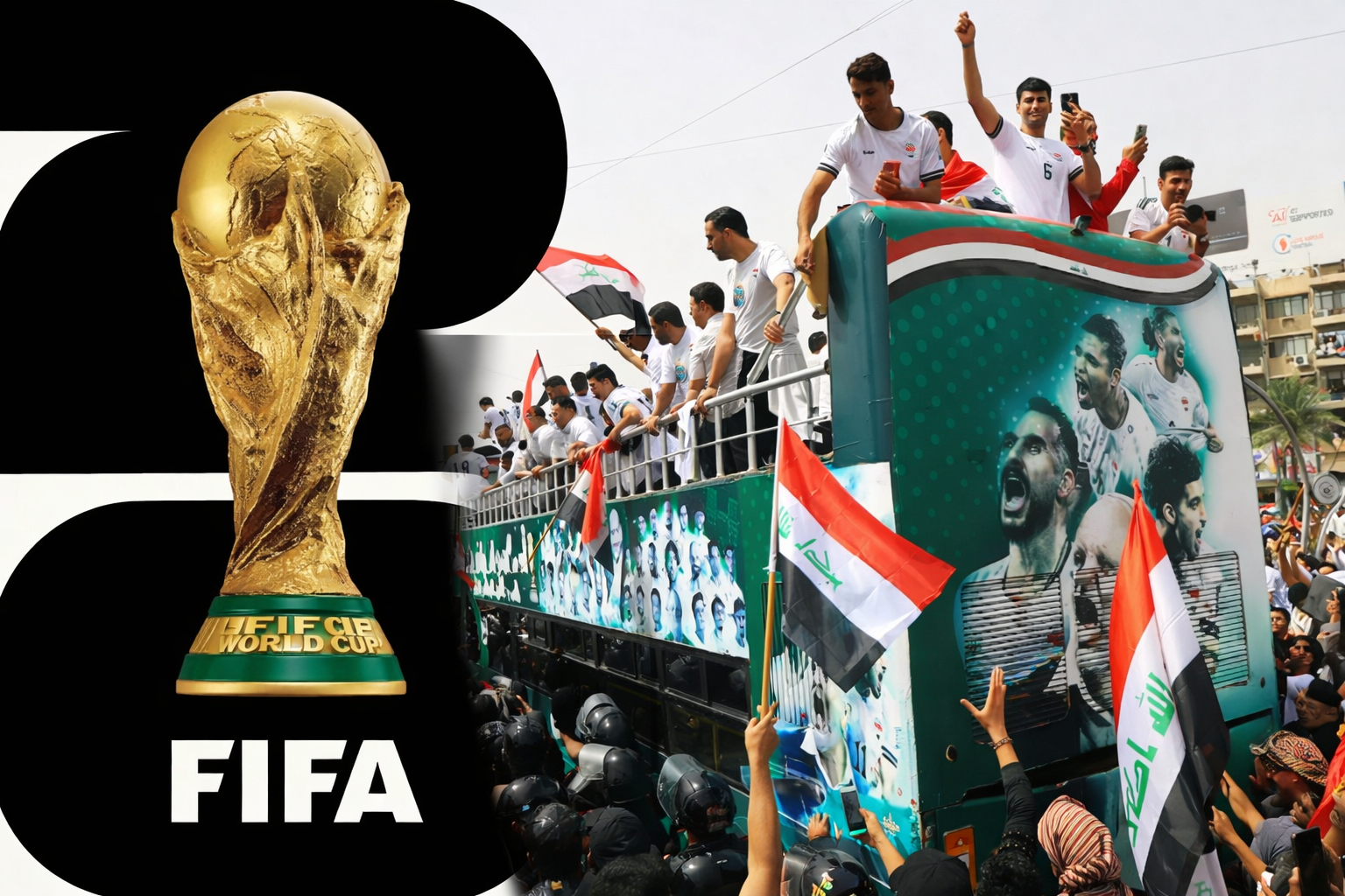 দীর্ঘ ৪০ বছর পর ফিফা বিশ্বকাপে অংশগ্রহণ নিশ্চিত করে নিজ দেশে রাজকীয় সংবর্ধনা পেল ইরাক ফুটবল দল । ছাদখোলা বাসে চড়ে দেশটির রাজধানী বাগদাদের পুরো শহর ঘুরে সমর্থকদের সঙ্গে এই সাফল্য উদযাপন করেছেন ফুটবলাররা।