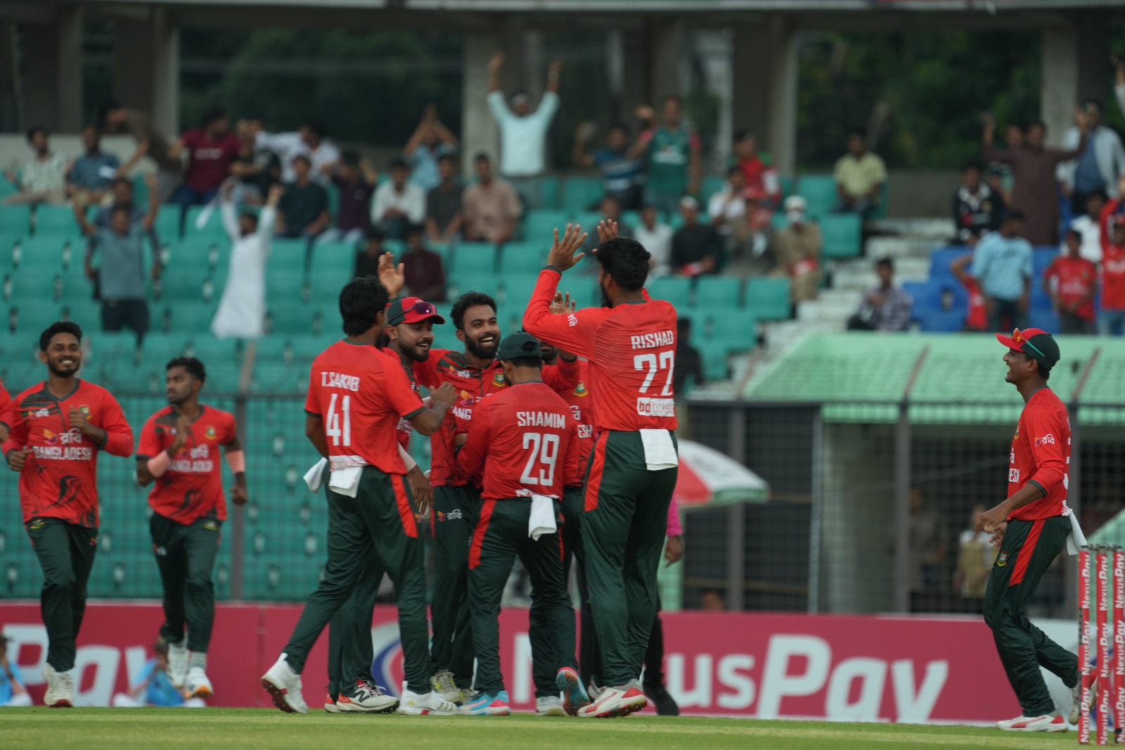 বাংলাদেশ একাদশ: তানজিদ হাসান, সাইফ হাসান, লিটন দাস (অধিনায়ক ও উইকেটরক্ষক), পারভেজ হোসেন ইমন, তাওহীদ হৃদয়, শামীম হোসেন, মাহেদী হাসান, রিশাদ হোসেন, তানজিম হাসান সাকিব, শরিফুল ইসলাম ও রিপন মন্ডল।