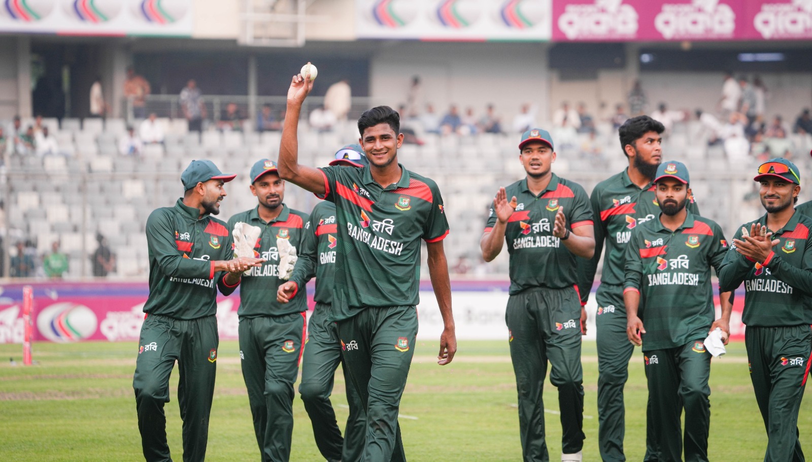 এর আগে বল হাতেও দাপট দেখায় টাইগাররা। নতুন বলে নিয়ন্ত্রিত বোলিং করেন তাসকিন আহমেদ ও মুস্তাফিজুর রহমান। যদিও শুরুতে উইকেট পাননি তারা, পরে আক্রমণে এসে ম্যাচের মোড় ঘুরিয়ে দেন নাহিদ রানা। নিজের স্পেলে টানা উইকেট তুলে নিয়ে পাকিস্তানের তটপ অর্ডার ভেঙে দেন তিনি। পরে মেহেদি হাসান মিরাজও গুরুত্বপূর্ণ তিনটি উইকেট নিয়ে পাকিস্তানের ইনিংস দ্রুত গুটিয়ে দিতে ভূমিকা রাখেন।