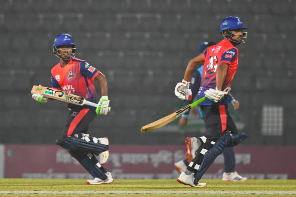 রাজশাহীর দুই পেসার রিপন মণ্ডল ও তানজিম হাসান সাকিবের তোপে ২০ ওভারে ৮ উইকেটে মাত্র ১২৪ রান করতে পারে টস হেরে আগে ব্যাটিংয়ে নামা নোয়াখালী। মা’জ সাদাকাত ১৯ বলে ২ চার, ১ ছয়ে ২৫, মাহিদুল ইসলাম অঙ্কন ২৭ বলে ১ ছক্কায় ২২ রান করেন।