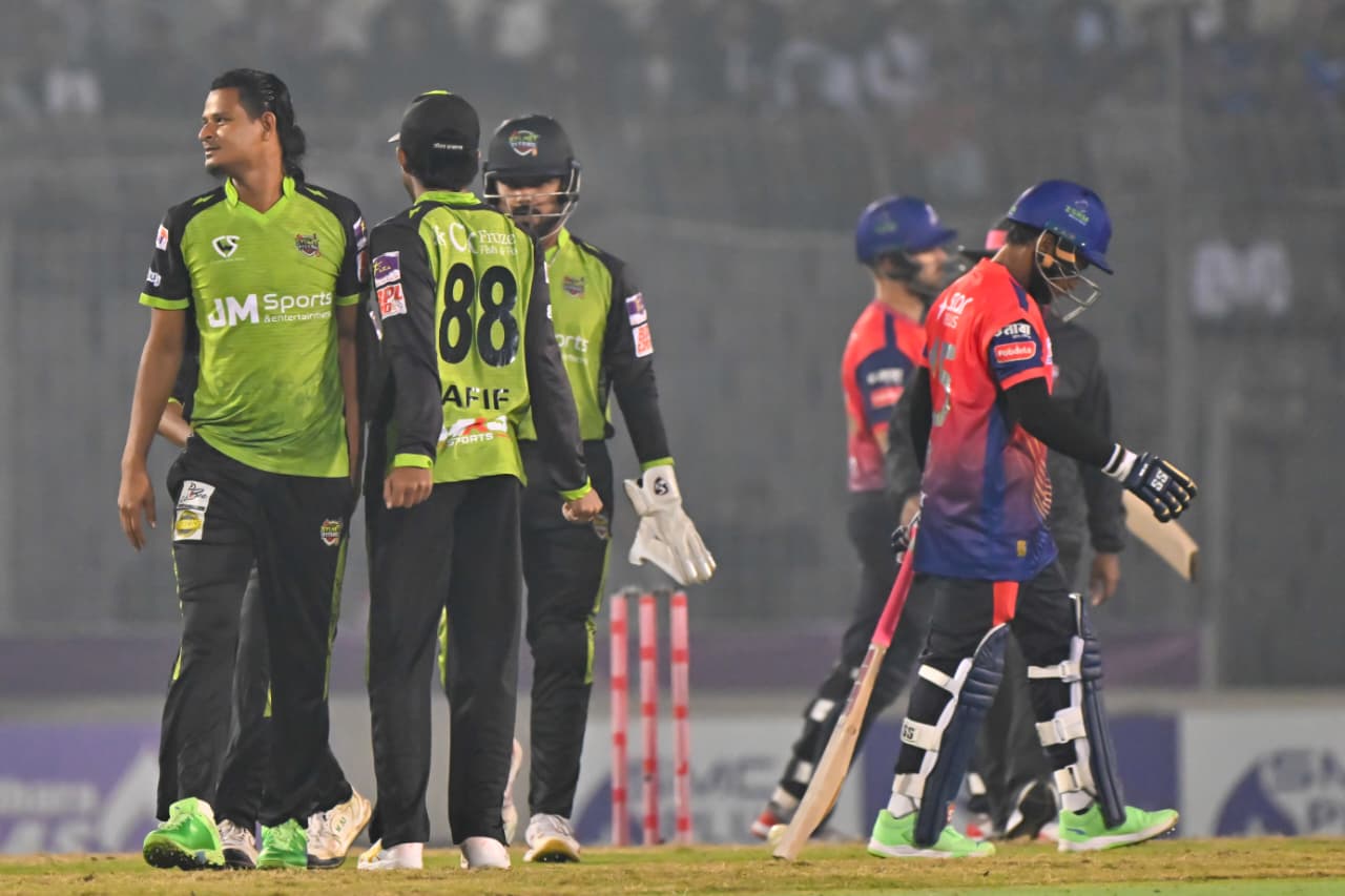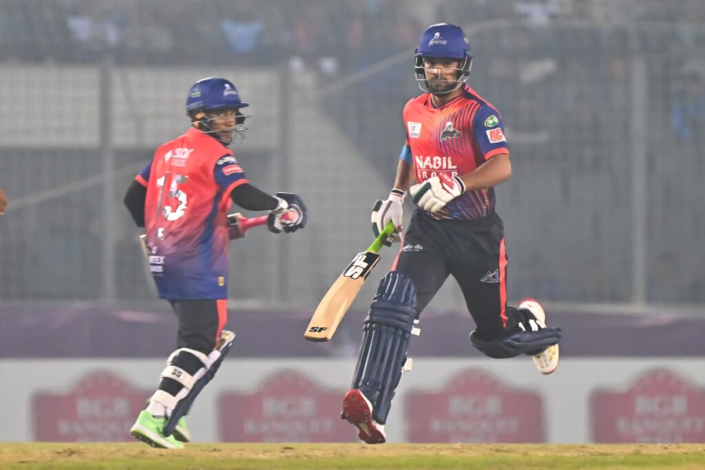 শুধু মুশফিক একপ্রান্তে ভালো খেলছিলেন। তিনিও ৩০ বলে ৪ চার, ১ ছক্কায় ৪০ রানে নাসুম আহমেদের বাঁহাতি স্পিনে সাজঘরে ফেরেন। পরবর্তী ১১.১ ওভারে ৬৫ রানে ৬ উইকেট হারিয়েছে রাজশাহী।