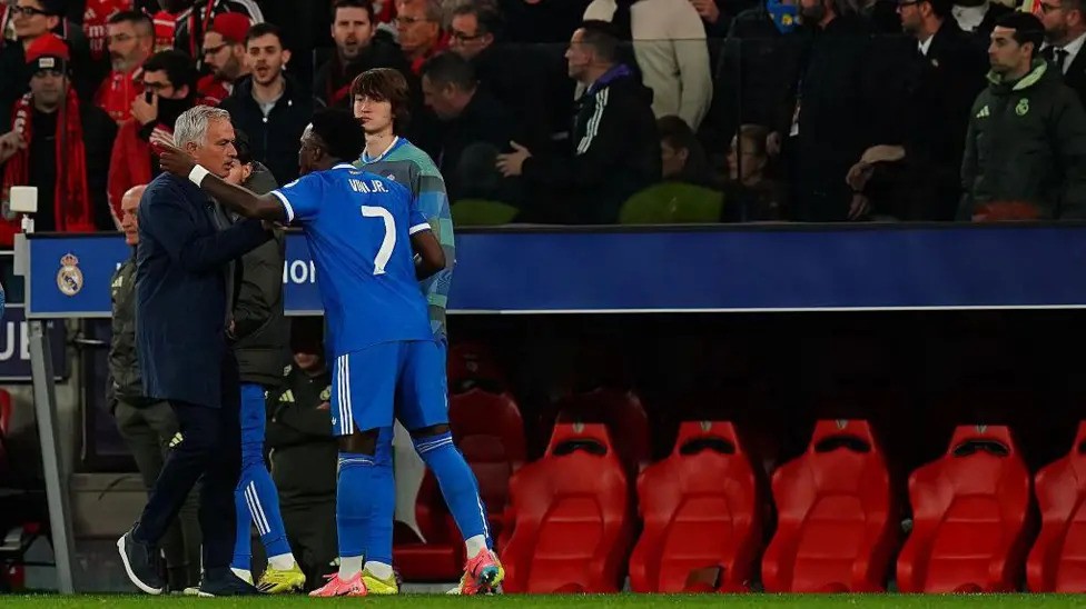 তার আগে অবশ্য গোল করার পর মাত্রাতিরিক্ত উদযাপন করায় রেফারি ভিনিসিয়ুসকে সতর্ক করেন। তারই জের ধরে শুরু হয় জটিলতা। ভিনিসিয়ুস মাঠ ছেড়ে চলে যান। তাকে অনুসরণ করেন সতীর্থরা। ম্যাচের উত্তেজনা আরও ছড়িয়ে পড়ে শেষ সময়ে। ৮৫তম মিনিটে বেনফিকার কোচ হোসে মরিনহোকে দুটো হলুদ কার্ড দেখানো হয়। ফলে ফিরতি লেগে তাকে আর বেনফিকার ডাগ আউটে দেখা যাবে না।